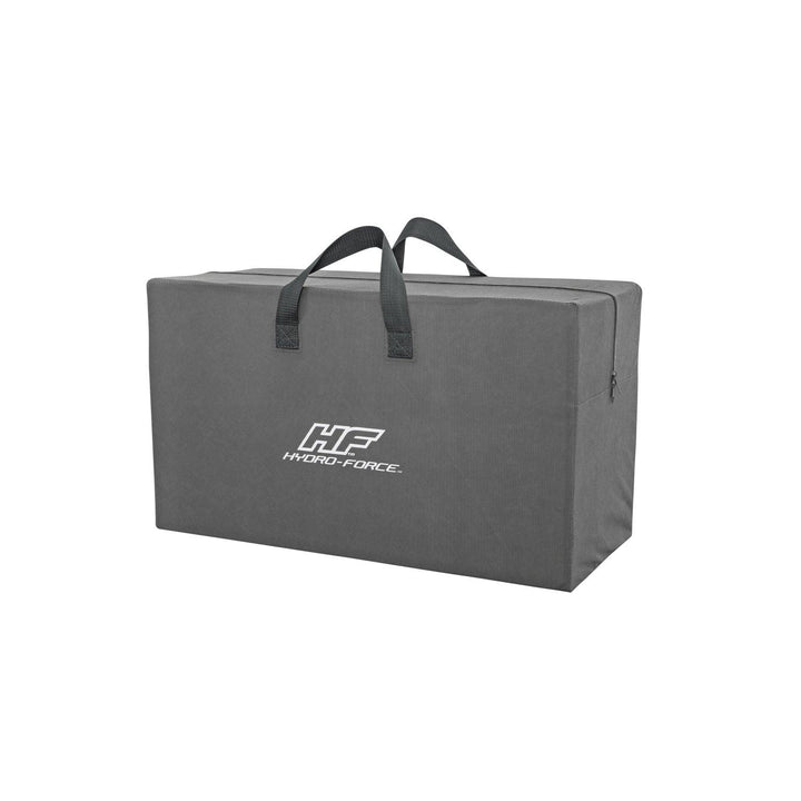 El Hydro-Force™ Treck X3 Set fue diseñado teniendo en mente la aventura al aire libre. Perfecta para 3 adultos y 1 niño (con una capacidad de peso total de 270 kg), la balsa de 3,07 m de largo es fácil de inflar para que pueda pasar menos tiempo en la configuración y más tiempo en el agua. La balsa cuenta con 3 cámaras de aire para proporcionar flotabilidad adicional, amortiguación y resistencia a las perforaciones para que pueda disfrutar de un viaje robusto. Además, la balsa tiene 2 asientos inflables y un piso inflable con ranuras para mantenerlo cómodo en su aventura. Los broches para remos están incorporados en los costados de la balsa para mantener su par de remos a bordo, y una cuerda de agarre envolvente con ojales incorporados le permite atracar la balsa o unirse con amigos. La balsa Treck X3 también incluye un asa de transporte resistente para transportar el bote a su punto de lanzamiento y un anillo de remolque para transportarlo fácilmente a través del lago. ¡Un día de diversión y sol en el lago es aún más fácil con el Hydro-Force Treck X3 Set